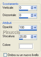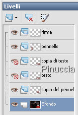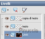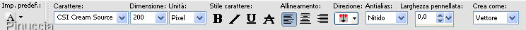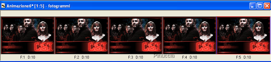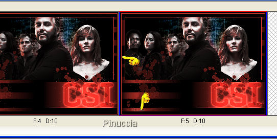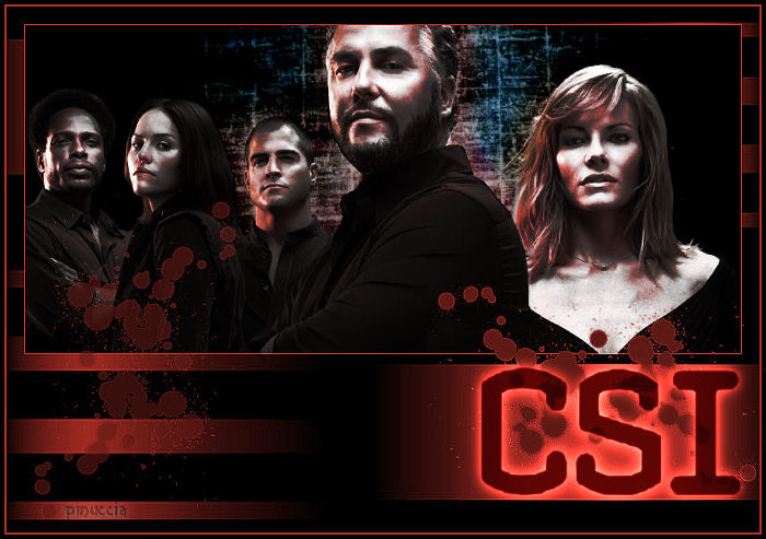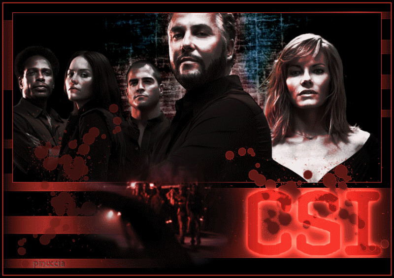 qui puoi trovare qualche risposta ai tuoi dubbi. Se l'argomento che ti interessa non è presente, ti prego di segnalarmelo. Questo tutorial è stato scritto con PSP X, ma può essere eseguito anche con le altre versioni di PSP. Occorrente: Materiale: qui Metti la Maschera nella cartella Maschere. Metti il pennello nella cartella Pennelli. Attenzione, il pennello è composto da due files che non devono essere separati. Vedi i miei appunti sui pennelli qui Il tube è di Lelanie. Se vuoi usarlo per altri tutorial, devi chiedere il permesso scritto all'autrice. Non si conosce il nome dell'autore della maschera e del pennello. Se lo conosci, scrivimi e gliene darò credito. Ti servirà Animation Shop qui 1. Apri il file "Lelanie_csi_layers". Questa sarà l'area del tuo lavoro. Vedrai che è composto da due livelli chiusi. Apri i livelli cliccando sull'occhio e posizionati sul livello superiore. 2. Livelli>Nuovo livello raster. 3. Imposta il colore di primo piano con il nero (#000000), e riempi il livello con questo colore.4. Livelli>Disponi>Porta sotto. 5. Attiva il livello centrale. 6. Nella paletta dei livelli questo livello è già correttamente impostato in Luce netta. ![]() 7. Livelli>Duplica. 8. Attiva il livello superiore (tube). 9. Cambia la modalità di miscelatura di questo livello in Filtra, e abbassa l'opacità al 53%. ![]() 10. Livelli>Duplica. 11. Regola>Sfocatura>Sfocatura gaussiana, raggio 20. ![]() 12. Selezione>Seleziona tutto. 13. Selezione>Mobile. 14. Selezione>immobilizza. 15. Premi sulla tastiera il tasto CANC ![]() 16. Riempi la selezione con un colore rosso.(io ho usato #cd352c). 17. Cambia la modalità di miscelatura di questo livello in Tonalità. per far risaltare il colore, ho riportato l'opacità al 100%, decidi tu se vuoi seguire il mio esempio. Livelli>Unisci>Unisci tutto. 18. Immagine>Aggiungi bordatura, 1 pixel, simmetriche, con il colore bianco. 19. Immagine>Aggiungi bordatura, simmetriche non selezionato, con il colore nero, e i seguenti settaggi: ![]() 20. Seleziona il bordo nero con la bacchetta magica ![]() ![]() 21. Selezione>inverti. 22. Selezione>Modifica>Contrai, di 1 pixel. 23. Selezione>Innalza selezione a livello. 24. Selezione>Deseleziona. 25. Livelli>Nuovo livello raster. Livelli>Disponi>Sposta giù. 26. Imposta il colore di primo piano con un colore un po' più scuro. io ho usato #5f1a15. 27. Riempi il livello con questo colore.28. Livelli>Carica/Salva maschera>Carica maschera da disco. Cerca e carica la maschera "X-04 msk", con i seguenti settaggi. ![]() 29. Livelli>Unisci>Unisci gruppo. 30. Livelli>Duplica. 31. Livelli>Unisci>Unisci giù. 32. Effetti>Effetti di bordo>Aumenta. 33. Attiva il livello inferiore. 34. Seleziona il bordo bianco con la bacchetta magica ![]() forse avrai dei problemi a selezionare lo spazio così piccolo. Ingrandisci la tela usando la rotellina del mouse, o attivando lo strumento zoom ![]() ![]() 35. Riempi la selezione con il colore rosso che hai scelto all'inizio.36. Regola>Messa a fuoco>Metti a fuoco. 37. Selezione>Deseleziona. 38. Livelli>Unisci>Unisci tutto. 39. Immagine>Aggiungi bordatura, 2 pixels, simmetriche, con il tuo colore rosso. 40. Immagine>Aggiungi bordatura, 5 pixels, simmetriche, con il colore nero. 41. Attiva lo strumento Testo ![]() 42. Imposta il font "CSI Cream Source Inside", con i seguenti settaggi: ![]() 43. Imposta il colore di sfondo con il tuo colore rosso e scrivi "CSI". 44 Sposta il testo in basso a destra, come nel mio esempio. Livelli>Converti in livello raster. Effetti>Effetti di bordo>Aumenta. 45. Effetti>Effetti 3D>Sfalsa ombra, con i seguenti settaggi, colore bianco. ![]() 46. Ripeti ancora una volta l'Effetto Sfalsa ombra (Modifica>Ripeti Sfalsa ombra). 47. Cambia la modalità di miscelatura di questo livello in Indebolisci. 48. Livelli>Duplica, e cambia la modalità di miscelatura di questo livello in Moltiplica. 49. Livelli>Nuovo livello raster. 50. Attiva lo strumento Pennello ![]() cerca e seleziona il pennello "004", dimensione 280, e applicalo cliccando una volta con il tasto destro del mouse, per usare il tuo colore rosso, che in questo momento è impostato come colore di sfondo. 51. Effetti>Effetti di bordo>Aumenta. 52. Sistema il pennello a sinistra:![]() 53. Livelli>Duplica. 54. Immagine>Capovolgi. 55. Immagine>Rifletti. 55. Sposta il secondo pennello un po' più in basso.![]() 56. Livelli>Unisci>Unisci giù. 57. Livelli>Duplica. 58. Immagine>Ruota per gradi, 90 gradi a destra. ![]() 59. Sposta il pennello a destra, sopra il testo.59. Nella paletta dei livelli, sposta questo livello sotto i livelli del testo. 60. Attiva il livello superiore del pennello e abbassa l'opacità al 60%. 61. Aggiungi il tuo watermark o un eventuale testo a scelta. Questa dovrebbe essere la paletta dei livelli. ![]() ![]() 62. Chiudi i due livelli con il testo CSI. ![]() Posizionati sul livello di sfondo e vai a Livelli>Unisci>Unisci visibile. 63. Adesso la tua paletta dei livelli è composta dal livello uniti e dai due livelli con il testo CSI. 64. Apri il livello inferiore del testo. ![]() 65. Modifica>Copia Unione. 66. Apri Animation Shop. 67. Modifica>Incolla>Incolla come nuova animazione. 68. Modifica>Duplica, e ripeti finchè non avrai 5 fotogrammi. Se l'immagine è troppo grande per poterla vedere agevolmente, puoi usare la rotellina del mouse per ridurne la visuale. ![]() 69. Torna in PSP. Apri il livello superiore del testo CSI. ![]() Modifica>Copia Unione. 70. Torna in Animation Shop. Clicca sull'ultimo fotogramma per selezionarlo. Soltanto questo deve essere selezionato e avere la cornice blu: ![]() 71. Modifica>Incolla>Incolla dopo il fotogramma corrente. Ripeti Modifica>Incolla>Incolla dopo il fotogramma corrente, finchè non avrai un totale di 10 fotogrammi. 72. Clicca sul primo fotogramma per selezionarlo e vai a Modifica>Seleziona tutto. 73. Apri l'animazione fornita con il materiale "lelanie_csi_animation_layers". 74. Clicca sul primo fotogramma per selezionarlo e vai a Modifica>