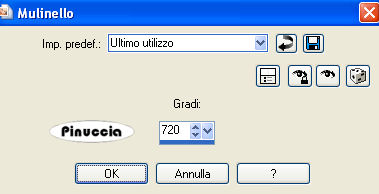 qui puoi trovare qualche risposta ai tuoi dubbi. Se l'argomento che ti interessa non è presente, ti prego di segnalarmelo. Questo tutorial è stato scritto con PSP X, ma può essere eseguito anche con le altre versioni di PSP. Occorrente: Materiale qui 1. Apri una nuova immagine trasparente 700 x 550 pixels. Selezione>Seleziona tutto. Attiva DaVinci_TutMaterials_ByLelanie, che contiene tutto l'occorrente per eseguire il tutorial, e che da questo momento chiamerò "materiale". Posizionati sul livello "Background" e vai a Modifica>copia. Torna all'immagine trasparente e vai a Modifica>Incolla nella selezione. Selezione>Deseleziona. 2. Livelli>Nuovo livello raster. Attiva lo strumento Selezione , rettangolo,clicca sull'icona Selezione personalizzata ![]() e imposta i seguenti settaggi: ![]() Attiva il materiale e posizionati sul livello "MonaLisa". Modifica>Copia. Torna al tuo lavoro e vai a Modifica>Incolla nella selezione. Selezione>Deseleziona. Cambia la modalità di miscelatura di questo livello in Luce diffusa. Livelli>Duplica. Cambia la modalità di miscelatura del livello duplicato in Sovrapponi. Livelli>Unisci>Unisci tutto. Attiva il materiale, posizionati sul livello "Silas" e vai a Modifica>Copia. Torna al tuo lavoro e vai a Modifica>Incolla come nuovo livello. Spostalo in alto a destra.Cambia la modalità di miscelatura di questo livello in Luce netta. Attiva il materiale, posizionati sul livello "RobertSophie", e vai a Modifica>Copia. Torna al tuo lavoro e vai a Modifica>Incolla come nuovo livello. Spostalo in alto a sinistra.Cambia la modalità di miscelatura di questo livello in Luce netta. Livelli>Unisci>Unisci tutto. ![]() 4. Attiva il materiale, posizionati sul livello "Frame" e vai a Modifica>Copia. Torna al tuo lavoro e vai a Modifica>Incolla come nuovo livello. E' già correttamente posizionata. Attiva il materiale, posizionati sul livello "Symbols" e vai a Modifica>Copia. Torna al tuo lavoro e vai a Modifica>Incolla come nuovo livello. Livelli>Unisci>Unisci tutto. 5. Aggiungi il tuo nome e/o il tuo watermark. Livelli>Unisci>Unisci tutto. 6. Attiva il materiale, posizionati sul livello "Spiral" e vai a Modifica>copia. Torna al tuo lavoro e vai a Modifica>Incolla come nuovo livello. Effetti>Effetti di distorsione>Mulinello: ![]() avrai una sorpresa! la spirale non c'è più! E' diventata una scritta ![]() Livelli>Unisci>Unisci tutto. Salva in formato jpg. se vuoi animare il tuo lavoro Occorrente: qui Apri Animation Shop e l'immagine che hai salvato in jpg. Modifica>Duplica e ripeti finchè non avrai un totale di 29 fotogrammi. clicca sul primo fotogramma per selezionarlo e vai a Modifica>Seleziona tutto. Apri l'animazione che hai trovato nello zip. Vedrai che anche questa animazione è composta da 29 fotogrammi. Clicca sul primo fotogramma per selezionarlo e vai a Modifica>Seleziona tutto e poi Modifica>copia. Torna al tuo lavoro e vai a Modifica>Incolla>Incolla nel fotogramma selezionato. Posiziona l'animazione nella striscia centrale e, quando sei certo di aver trovato la posizione corretta, rilascia il tasto del mouse. Controlla il risultato cliccando su Visualizza ![]() Se non sei soddisfatto, puoi tornare indietro con Modifica>Annulla Incolla e ripetere l'operazione. Quando sei soddisfatto: Animazione>Proprietà fotogramma, e imposta la velocità a 15. ![]() ![]() Se hai problemi o dubbi, o trovi un link non funzionante, o anche soltanto per un saluto, scrivimi. 4 Gennaio 2008 |