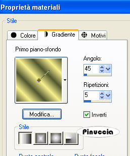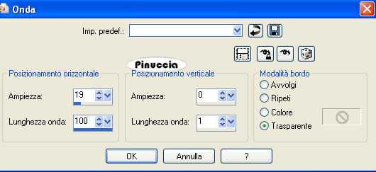 qui puoi trovare qualche risposta ai tuoi dubbi. Se l'argomento che ti interessa non è presente, ti prego di segnalarmelo. Questo tutorial è stato scritto con PSP X, ma può essere eseguito anche con le altre versioni di PSP. Occorrente: Materiale qui Metti il pennello nella cartella dei Pennelli. Attenzione, il pennello è composto da due files che non devono essere separati. Vedi alcuni appunti sull'argomento qui Il tube della donna è di Mariel Il resto del materiale è di Lelanie. L'immagine del cuore viene dal web. Filtro: Dsb Flux qui Preparazione: Apri i tubes in PSP. Scegli un colore chiaro come colore di primo piano e un colore scuro come colore di sfondo. Passa il colore di primo piano a Gradiente di primo piano/sfondo, con i seguenti settaggi: ![]() 1. Apri LelaniesBlend001 e vai a Modifica>Copia (puoi chiuderlo). Modifica>Incolla come nuova immagine. Questa sarà la base del tuo lavoro. 2. Attiva LelaniesBlend003, e vai a Modifica>Copia. Torna al tuo lavoro e vai a Modifica>Incolla come nuovo livello. Cambia la modalità di miscelatura di questo livello in Luminanza. Livelli>Duplica. Cambia la modalità di miscelatura di questo livello in Indebolisci. Livelli>Disponi>Sposta giù. 3. Attiva il livello superiore. Attiva il tube con il viso di donna e vai a Modifica>Copia. Torna al tuo lavoro e vai a Modifica>Incolla come nuovo livello. Sposta questo tube a destra.Livelli>Duplica. Effetti>Plugins>Dsb Flux - Blast, con i seguenti settaggi: ![]() Regola>Sfocatura>Sfocatura gaussiana, raggio 2. Ripeti l'Effetto Dsb Flux - Blast. Effetti>Effetti 3D>Sfalsa ombra, con i seguenti settaggi, colore nero. ![]() Effetti>Effetti di distorsione>Onda, con i seguenti settaggi. ![]() Ripeti questo effetto 6 volte (per velocizzare premi sulla tastiera Ctrl+Y). Cambia la modalità di miscelatura di questo livello in Rafforza. 4. Immagine>Aggiungi bordatura, 2 pixels, simmetriche, con il colore nero. Immagine>Aggiungi bordatura, 2 pixels. simmetriche, con il colore bianco. Seleziona il bordo bianco con la bacchetta magica ![]() ![]() Riempi la selezione con il gradiente.Effetti>Effetti di bordo>Aumenta. Selezione>Deseleziona. 5. Attiva LelaniesBlend002, e vai a Modifica>Copia. Torna al tuo lavoro e vai a Modifica>Incolla come nuovo livello. Livelli>Nuovo livello raster. Attiva lo strumento Pennello ![]() cerca e seleziona il pennello LelaniesBrush_TheGreatestTreasures4, dimensione 470 pixels: ![]() Imposta il colore di primo piano con un colore chiaro, e applica il pennello cliccando due volte a sinistra. Effetti>Effetti 3D>Sfalsa ombra, con i settaggi precedenti. Ripeti l'Effetto Sfalsa ombra, ancora due volte. Livelli>Duplica, e cambia la modalità di miscelatura di questo livello in Moltiplica, o la modalità che ti piace di più, per dare al testo un bell'effetto di colore. 6. Aggiungi il tuo nome e/o il tuo watermark. Immagine>Aggiungi bordatura, 2 pixels, simmetriche, con il colore nero. Salva in formato jpg. ![]() Se hai problemi o dubbi, o trovi un link non funzionante, o anche soltanto per un saluto, scrivimi. 9 Gennaio 2008 |