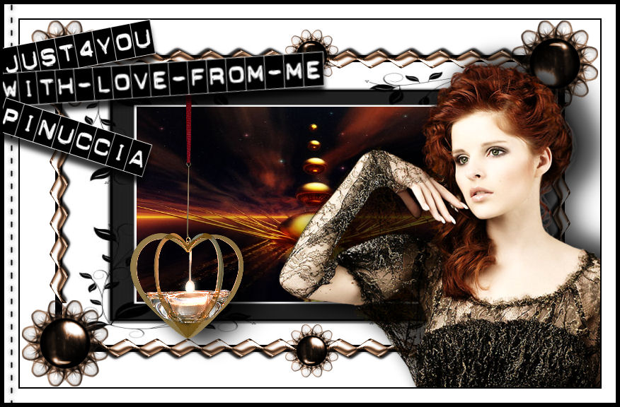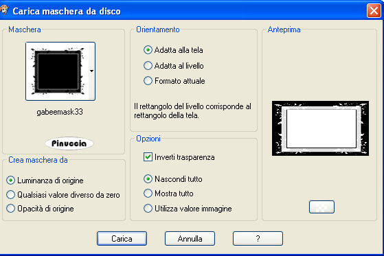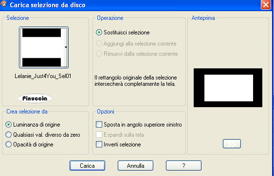qui puoi trovare qualche risposta ai tuoi dubbi. Se l'argomento che ti interessa non è presente, ti prego di segnalarmelo. Questo tutorial è stato scritto in PSP X, ma può essere eseguito anche con le altre versioni di PSP. Occorrente: Materiale: qui (Attenzione: i livelli dei tubes sono chiusi) Il tube della donna è di Jet. Il tube della cornice è è stato creato con tube di Ann e Brigitte-MTM . Il tube del cuore è di Margit . Metti la maschera nella cartella Maschere. Metti la Selezione nella cartella Selezioni. 1. Apri una nuova immagine BIANCA 700 x 400 pixels. Livelli>Nuovo livello raster. Riempi con il nero.2. Livelli>Carica/Salva maschera>Carica maschera da disco. Cerca e carica la maschera gabeenmask33, con i seguenti settaggi: ![]() Livelli>Unisci>Unisci gruppo. 3. Livelli>Nuovo livello raster. Selezione>Carica/Salva selezione>Carica Selezione da disco. Cerca e carica la selezione "Lelanie_Just4You_Sel01". ![]() Apri l'immagine "1 anomaly" e vai a Modifica>Copia. Torna al tuo lavoro e vai a Modifica>Incolla nella selezione. Selezione>Deseleziona. Livelli>Duplica. Cambia la modalità di miscelatura di questo livello in Luce diffusa. 4. Immagine>Aggiungi bordatura, 10 pixels, simmetriche, con il colore nero. Immagine>Aggiungi bordatura, 50 pixels, simmetriche, con il colore bianco. Apri il tube della cornice "©nnANDmanoncreations" e vai a Modifica>Copia. Torna al tuo lavoro e vai a Modifica>Incolla come nuovo livello. Livelli>Duplica. Regola>Saturazione e tonalità>Viraggio: ![]() Cambia la modalità di miscelatura di questo livello in Luce netta. 5. Apri il tube del cuore "mh julestage 2005" e vai a Modifica>Copia. Torna al tuo lavoro e vai a Modifica>Incolla come nuovo livello. Effetti>Effetti 3D>Sfalsa ombra, con i seguenti settaggi, colore nero: ![]() Ripeti ancora 2 volte l'Effetto Sfalsa ombra. Posiziona il tube come nel mio esempio.6. Apri il tube della donna "Jet-woman17" e vai a Modifica>Copia. Torna al tuo lavoro e vai a Modifica>Incolla come nuovo livello. Sposta il tube a destra, come nel mio esempio.Effetti>Effetti 3D>Sfalsa ombra, con i settaggi precedenti. Ripeti l'Effetto Sfalsa ombra ancora una volta. 7. Immagine>Aggiungi bordatura, 2 pixels, simmetriche, con il colore nero. Immagine>Aggiungi bordatura, 20 pixels, simmetriche, con il colore bianco. Immagine>Aggiungi bordatura, 2 pixels, simmetriche, con il colore nero. 8. Apri "Lelanie_Just4You_Stiksel01", e vai a Modifica>Copia. Torna al tuo lavoro e vai a Modifica>Incolla come nuovo livello. Sposta il tube a sinistra, nella cornice bianca.9. Attiva lo strumento Testo ![]() seleziona il font "PunchLabel", con i seguenti settaggi: Dimensione 48, pennellata 0,8, vettore. ![]() Imposta il colore di primo piano con il bianco e il colore di sfondo con il nero. Scrivi il testo. Livelli>Converti in livello raster. Clicca con la bacchetta magica all'esterno del testo.![]() Selezione>Inverti. Livelli>Nuovo livello raster. Selezione>modifica>Contrai, di 2 pixels. Riempi con il bianco.Livelli>Disponi>Sposta giù. Ritorna sul livello superiore del testo. Livelli>Unisci>Unisci giù. Ripeti tutto il passa per ogni riga di testo che vorrai scrivere. 10. Attiva lo strumento Puntatore ,deformazione se stai usando PSP 9,ruota e sposta le righe di testo per sistemarle a sinistra della tag. sull'uso dello strumento Puntatore-Deformazione vedi qui Effetti>Effetti 3D>Sfalsa ombra, con i seguenti settaggi, colore nero. ![]() Ripeti l'Effetto Sfalsa ombra su tutti gli altri livelli di testo. Aggiungi il tuo nome e/o il tuo watermark. Immagine>Aggiungi bordatura, 4 pixels, simmetriche, con il colore nero. ![]() ![]() Se hai problemi o dubbi, o trovi un link non funzionante, o anche soltanto per un saluto, scrivimi. 30 Gennaio 2008 |