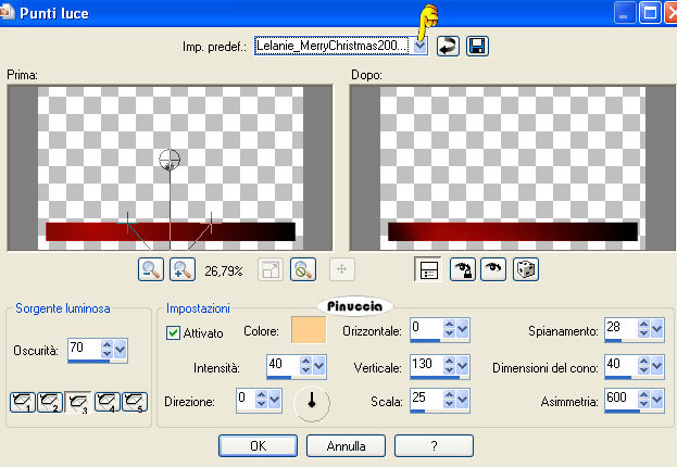 apri il menu delle impostazioni, seleziona il preset "Lelanie_MerryChristmas2008_Lights" e clicca ok.