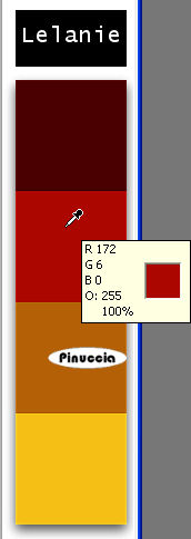 Apri la mappa dei colori che dovrai utilizzare. Attiva lo strumento Contagocce e clicca con il tasto sinistro del mouse sul colore rosso chiaro per impostarlo come colore di primo piano e con il tasto destro del mouse sul colore rosso scuro per impostarlo come colore di sfondo.