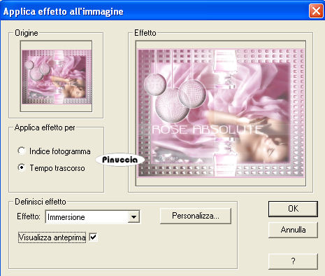 Seleziona l'effetto Immersione, e clicca su Personalizza per impostare i settaggi: