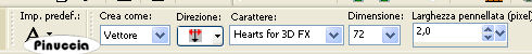 2. Attiva lo strumento Testo , font Hearts for 3D FX, crea come vettore, dimensione 72, pennellata 2: