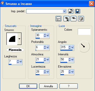 Effetti>Effetti 3D>Smusso a incasso, con i settaggi precedenti.