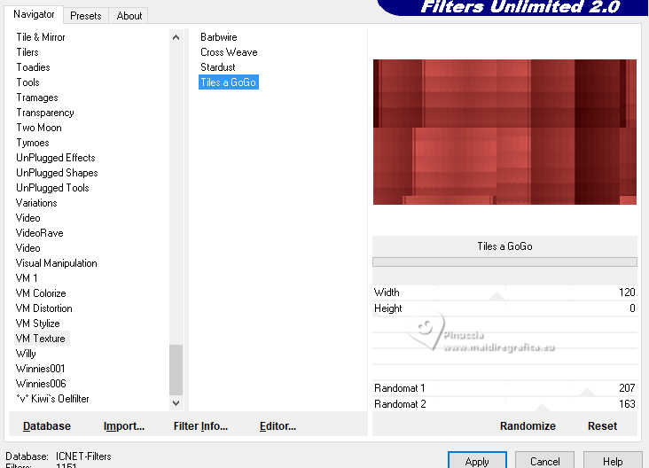 4. Effects>Plugins>Filters Unlimited>VM Texture - Tiles a Gogo