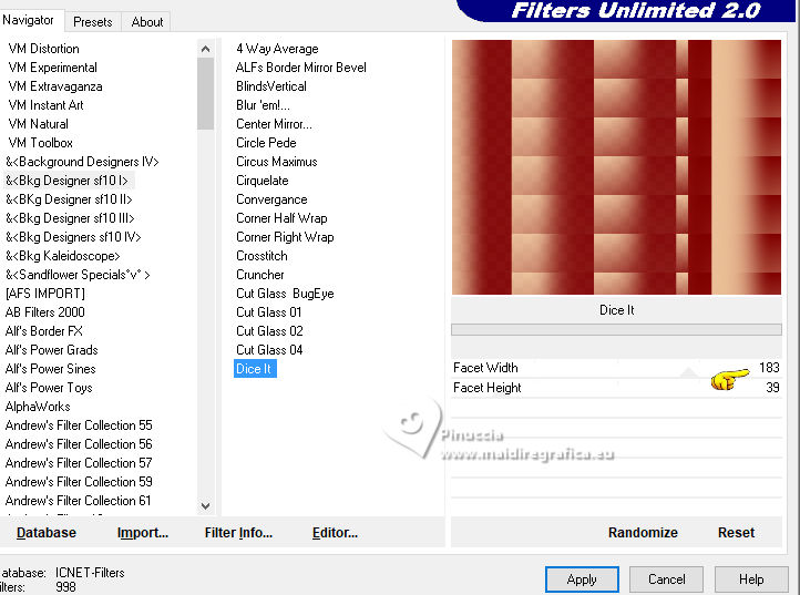 4. Effects>Plugins>Filters Unlimited 2.0 - &<Bkg Designer sf10I> - Dice It.