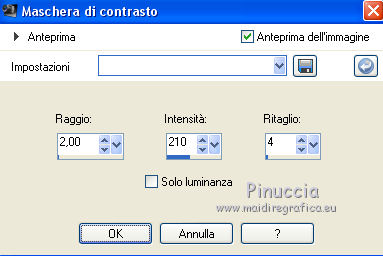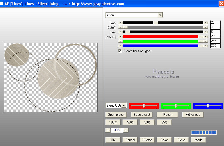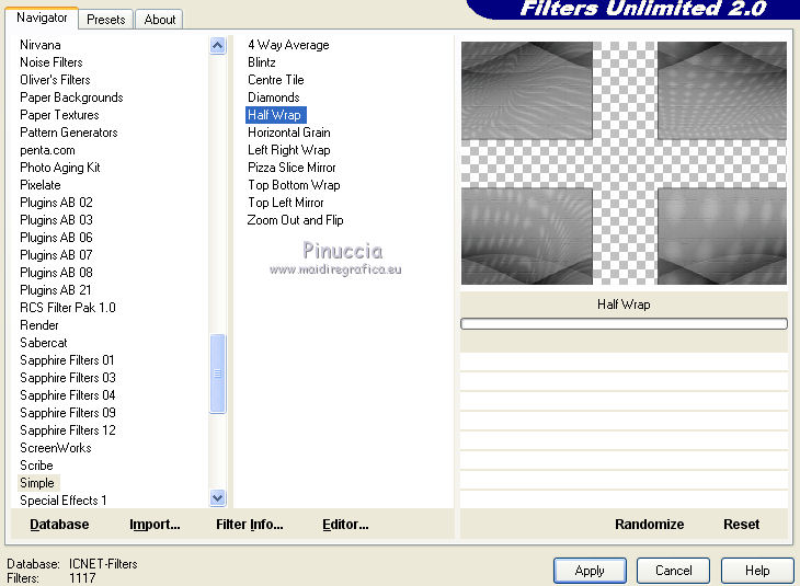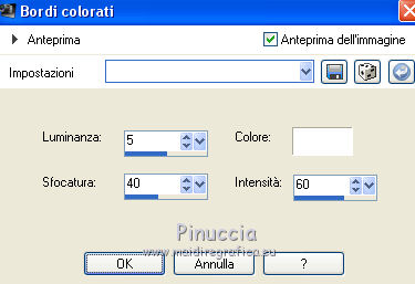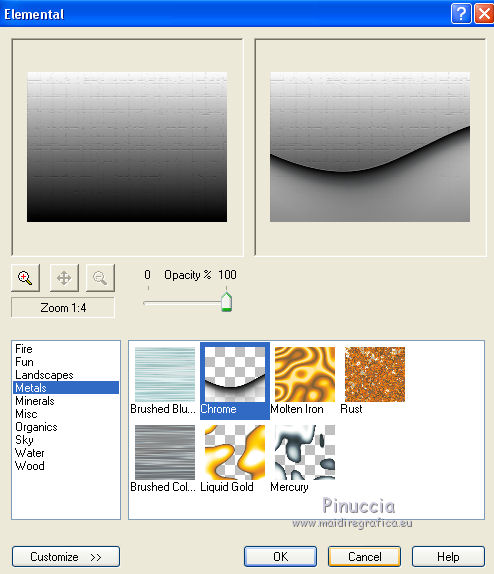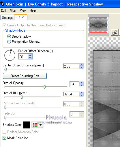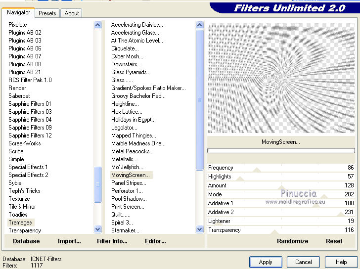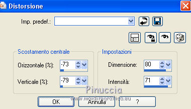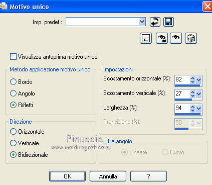 qui puoi trovare qualche risposta ai tuoi dubbi. Se l'argomento che ti interessa non è presente, ti prego di segnalarmelo. Questo tutorial è stato creato da Libellule con X12, ma può essere eseguito con tutte le versioni di PSP Dalla versione X4, il comando Immagine>Rifletti è stato sostituito con Immagine>Capovolgi in orizzontale, e il comando Immagine>Capovolgi con Immagine>Capovolgi in verticale. Nelle versioni X5 e X6, le funzioni sono state migliorate rendendo disponibile il menu Oggetti. Vedi la scheda sull'argomento qui Per tradurre questo tutorial ho usato PSP X. Occorrente. Materiale qui Il tube utilizzato è di Nicole. qui trovi i siti dei creatori di tubes. Filtri in caso di dubbi, ricorda di consultare la mia sezione filtri qui Filters Unlimited 2.0 qui XE Xtras - Elemental qui Simple qui AP Lines - Lines SilverLining qui Tramages - Moving Screen qui Texture - Craquelure qui Alien Skin Eye Candy 5 Impact - Perspective Shadow qui I filtri Tramages e Simple si possono usare da soli o importati in Filters Unlimited (come fare vedi qui) Se un filtro fornito appare con questa icona ![]() 1. Imposta il colore di primo piano con il colore bianco #ffffff, e il colore di sfondo con il colore nero #000000. ![]() Passa il colore di primo piano a Gradiente di primo piano/sfondo, stile Lineare. ![]() 2. Apri una nuova immagine trasparente 800 x 600 pixels, e riempila con il gradiente.3. Effetti>Plugins>Textures - Craquelure. ![]() 4. Effetti>Plugins>XE Xtras - Elemental. ![]() 5. Livelli>Duplica. 6. Effetti>Effetti di immagine>Motivo unico. ![]() 7. Abbassa l'opacità di questo livello al 50%. ![]() Attiva il livello sottostante Raster 1. Immagine>Capovolgi. 8. Livelli>Unisci>Unisci visibile. effetti>Effetti di immagine>Motivo unico, con i settaggi precedenti. 9. Effetti>Plugins>Simple - 4Way Average. Effetti>Effetti di bordo>Aumenta. 10. Livelli>Nuovo livello raster. Riporta il colore di primo piano a Colore, e riempi il livello con il colore bianco.Effetti>Plugins>Filters Unlimited 2.0 - Tramages - Moving Screen. ![]() Cambia la modalità di miscelatura di questo livello in Differenza, e abbassa l'opacità al 20%. ![]() 11. Effetti>Effetti di distorsione>Distorsione. ![]() 12. Immagine>Aggiungi bordatura, 2 pixels, simmetriche, con il colore nero. 13. Livelli>Duplica. Immagine>Ridimensiona, all'80%, tutti i livelli non selezionato. ![]() 14. Di nuovo Livelli>Duplica, e attiva il livello sottostante dell'originale. Effetti>Plugins>Filters Unlimited 2.0 - Simple - Half Warp. ![]() 15. Effetti>Plugins>Alien Skin Eye Candy 5 Impact - Perspective Shadow. ![]() 16. Attiva il livello superiore. Effetti>Plugins>Alien Skin Eye Candy 5 Impact - Perspective Shadow, con i settaggi precedenti. ![]() 17. Apri il tube Lila by-mago74 png (35) e vai a Modifica>Copia. Torna al tuo lavoro e vai a Modifica>incolla come nuovo livello. Immagine>Ridimensiona, al 60%, tutti i livelli non selezionato. 18. Effetti>Plugins>AP Lines - Lines SilverLining. ![]() Cambia la modalità di miscelatura di questo livello in Luce diffusa. ![]() 19. Livelli>Nuovo livello raster. Selezione>Seleziona tutto. Apri il frattale Karella1022Fractal0006.png e vai a Modifica>Copia. Torna al tuo lavoro e vai a Modifica>Incolla nella selezione. Selezione>Deseleziona. 20. Effetti>Plugins>4Way Average. Cambia la modalità di miscelatura di questo livello in Saturazione. ![]() Regola>Messa a fuoco>Metti a fuoco. 21. Livelli>Duplica (per il mio esempio non ho duplicato il livello). Livelli>Unisci>Unisci giù. 22. Livelli>Nuovo livello raster. Riempi con il colore nero.Selezione>Seleziona tutto. Selezione>Modifica>Contrai - 3 pixels. Premi sulla tastiera il tasto CANC ![]() Selezione>Deseleziona. 23. Apri il tube nicole-etrange-femme2-2012.pspimages e vai a Modifica>Copia. Torna al tuo lavoro e vai a Modifica>Incolla come nuovo livello. Immagine>Ridimensiona, all'80%, tutti i livelli non selezionato. 24. Effetti>Effetti di immagine>Scostamento. ![]() 25. Livelli>Duplica, e attiva il livello sottostante dell'originale (Raster 4). Effetti>Effetti artistici>Bordi colorati. ![]() 26. Regola>Messa a fuoco>Maschera di contrasto. ![]() 27. Attiva nuovamente il livello superiore. Apri il wordart duality_wordart_libellule.png, e vai a Modifica>Copia. Torna al tuo lavoro e vai a Modifica>Incolla come nuovo livello. 28. Immagine>Ruota per gradi - 90 gradi a sinistra. ![]() Spostalo a sinistra.29. Firma il tuo lavoro. Livelli>Unisci>Unisci tutto e salva in formato jpg. Per questo esempio ho usato un tube di Katrina. ![]() ![]() Se hai problemi o dubbi, o trovi un link non funzionante, o anche soltanto per un saluto, scrivimi. 25 Agosto 2014 |
