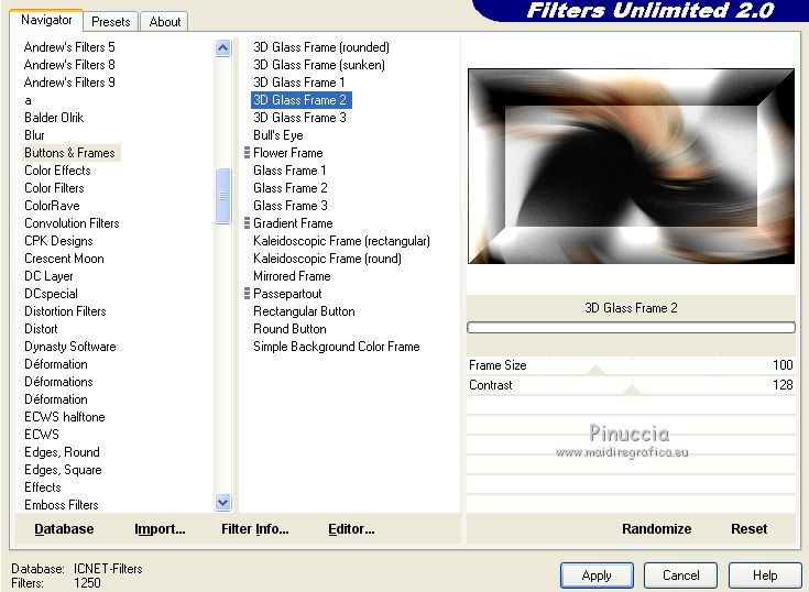 Effets>Modules Externes>Filters Unlimited 2.0 - Buttons &Frames - 3D Glass Frame 2.