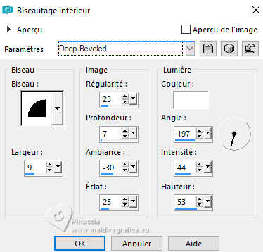 17. Effets>Effets 3D>Biseautage intérieur - sélectionner le preset Bevel_Deep Beveled