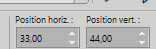 placer Position horiz.: 33,00 et Position vert.: 44,00.