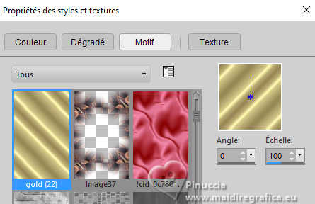 10. Placer en avant plan Texture et sélectionner la texture gold(22) avec ces réglages