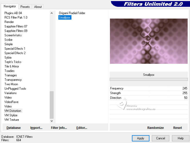 Effets>Modules Externes>Filters Unlimited 2.0 - VM Distortion - Smallpox.