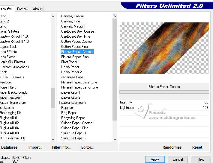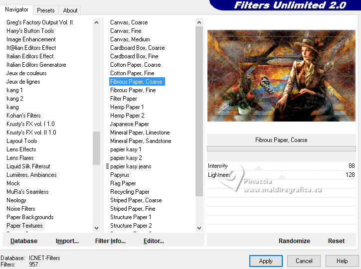 32. Effets>Modules Externes>Filters Unlimited 2.0 - Paper Texture, comme précédemment.