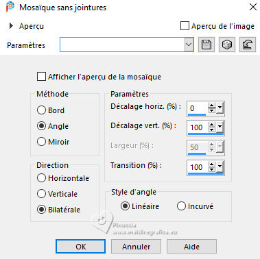 3. Effets>Effets d'image>Mosaïque sans jointures, par défaut.