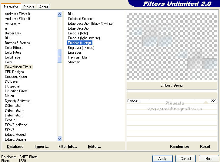 28. Effets>Modules Externes>Filters Unlimited 2.0 - Convolution Filters Emboss (strong).