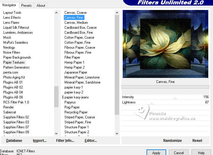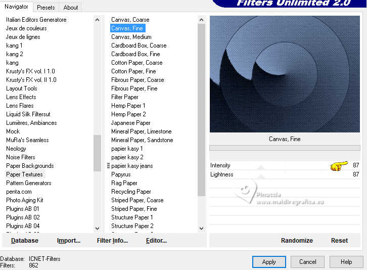 25. Effets>Modules Externes>Filters Unlimited 2.0 - Paper Texture - Canvas Fine, par défaut.