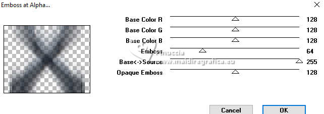 Effets>Modules Externes>Mura's Seamless - Emboss at Alpha, par défaut.