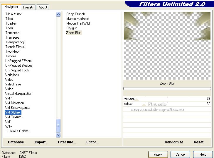 21. Effets>Modules Externes>Filters Unlimited 2.0 - VM Stylize - Zoom Blur, par défaut.