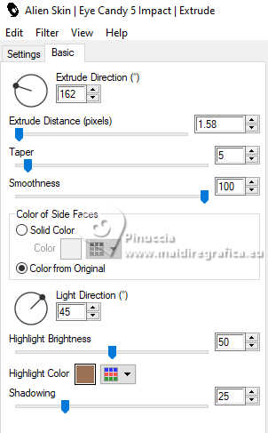 24. Effets>Modules Externes>Alien Skin Eye Candy 5 Impact - Extrude, comme précédemment.