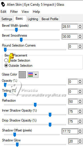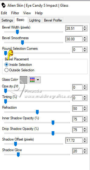 22. Répéter Effets>Modules Externes>Alien Skin Eye Candy 5 Impact - Glass, Inside Selection sélectionné