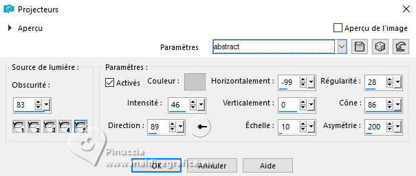 Effets>Effets d'éclairage>Projecteurs - sélectionner le preset astract