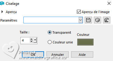 14. Effets>Effets 3D>Ciselage - couleur d'arrière plan #6b6e4e.