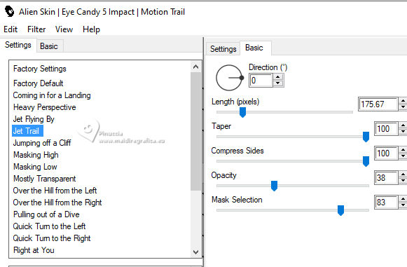 14. Effets>Modules Externes>Alien Skin Eye Candy 5 Impact - Motion Trail.