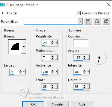 8. Répéter Effets>Effets 3D>Biseautage intérieur, comme précédemment.