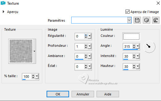 20. Effets>Effets de textures>Texture - sélectionner la texture Corel_15_013, ou Support grossier