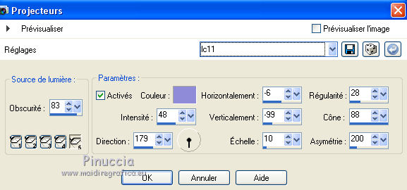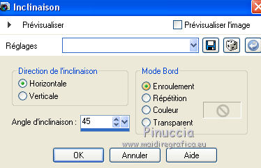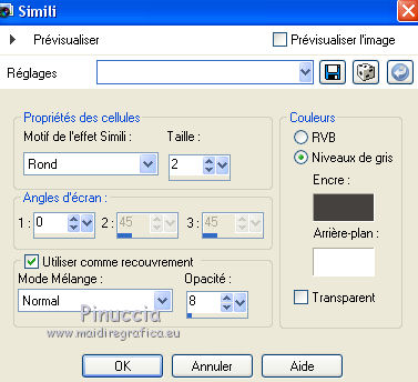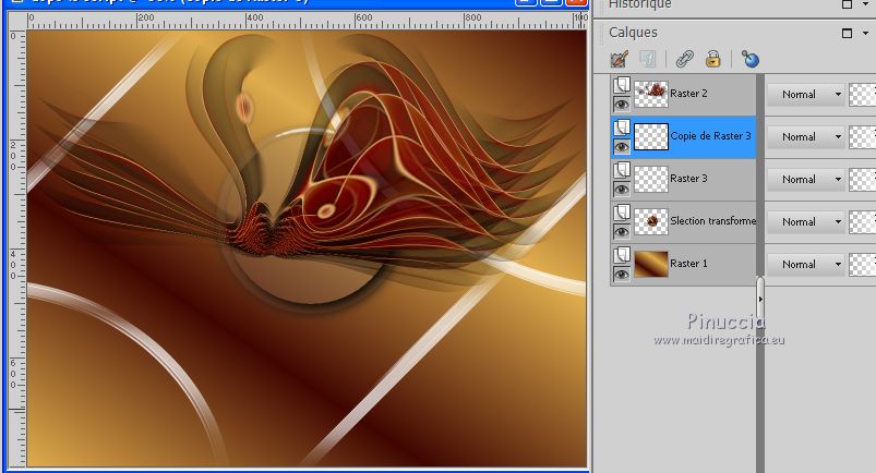 si vous avez des problèmes avec le script, ouvrir le file "script" et copier/coller comme nouveau calque les deux calques. ![]() 9. Vous positionner sur le calque Raster 3 (le premier calque du script). Effets>Modules Externes>Mehdi - Weaver. ![]() 10. Vous positionner sur le calque Copie de Raster 3. Effets>Modules Externes>Mehdi - Weaver. ![]() Calques>Fusionner>Fusionner le calque de dessous. Effets>Modules Externes>Mura's Seamless - Emboss at Alpha, par défaut. ![]() Effets>Effets de distorsion>Cintrage ![]() 11. Vous positionner sur le calque Raster 1. Effets>Modules Externes>Graphics Plus - Button Beveler III. ![]() 12. Effets>Modules Externes>Simple - Pizza Slice Mirror. Effets>Modules Externes>Simple - Top Left Mirror. ![]() 13. Effets>Effets artistiques>Simili. ![]() Réglage>Ajouter/Supprimer du bruit - Correction de l'artefact JPEG ![]() Effets>Modules Externes>FM Tile Tools - Blend Emboss, par défaut. ![]() 14. Sélections>Charger/Enregistrer une sélection>Charger à partir du disque. Chercher et charger la sélection sienna2lc.PspSelection. ![]() Sélections>Transformer la sélection en calque. 15. Effets>Modules Externes>Carolaine and Sensibility - CS-HLines, par défaut. ![]() Sélections>Désélectionner tout. Effets>Effets de bords>Accentuer. Calques>Dupliquer. Image>Miroir. Calques>Fusionner>Fusionner le calque de dessous. Effets>Modules Externes>Alien Skin Eye Candy 5 Impact - Perspective Shadow, comme précédemment. ![]() 16. Vous positionner à nouveau sur le calque Raster 1. Sélections>Charger/Enregistrer une sélection>Charger à partir du disque. Chercher et charger la sélection sienna3lc.PspSelection. ![]() Calques>Nouveau calque raster. Placer en avant plan la couleur. Remplir la sélection avec la couleur d'avant plan #dfad4d.17. Effets>Modules Externes>Alien Skin Eye Candy 5 Impact - Extrude les deux couleur Solid Color et Hightlight Color: votre couleur d'arrière plan #400802 ![]() Sélections>Désélectionner tout. 18. Effets>Modules Externes>Carolaine and Sensibility - CS-HLines, par défaut. ![]() Effets>Effets de bords>Accentuer. Effets>Modules Externes>Alien Skin Eye Candy 5 Impact - Perspective Shadow, comme précédemment. ![]() 19. Vous positionner sur le calque Raster 1. Effets>Effets d'éclairage>Projecteur sélectionner le preset lc11 ![]() 20. Effets>Modules Externes>Nik Software - Color Efex Pro - Glamor Glow. ![]() Répéter l'Effet Nik Software sur le calque Raster 4. 21. Calques>Nouveau calque raster. Calques>Agencer>Placer en bas de la pile. Sélections>Sélectionner tout. Ouvrir l'image free_back_ildiko (4) - Édition>Copier. Revenir sur votre travail et Édition>Coller dans la sélection. Sélections>Désélectionner tout. Placer le calque Raster 1 en mode Recouvrement. ![]() Vous positionner sur le calque Sélection transformée (le calque de la sélection circle1lc) ![]() Réglage>Traitement rapide des photos. Placer le calque Raster 3 (le script) en mode Écran. ![]() Optionnel: vous positionner sur le calque Raster 2. Effets>Modules Externes>Alien Skin Eye Candy 5 Impact - Perspective Shadow, comme précédemment. ![]() La tag et les calques ![]() 22. Ouvrir le tube SuizaBella_Ref_AG-00747 - Édition>Copier. Revenir sur votre travail et Édition>Coller comme nouveau calque. Image>Redimensionner, 80%, redimensionner tous les calques décoché. Déplacer le tube à gaucheEffets>Effets 3D>Ombre portée, à choix 23. Ouvrir le tube Grisi_Tube_Decoration_357 - Édition>Copier. Revenir sur votre travail et Édition>Coller comme nouveau calque. Image>Redimensionner, 2 fois à 80%, redimensionner tous les calques décoché. Déplacer le tube en bas à droite.Effets>Effets 3D>Ombre portée, à choix 24. Signer votre travail sur un nouveau calque. petite note sur le watermark: je ne demande pas de mettre le watermark sur les versions faites après mes traductions. Mais, si vous décidez d'utiliser le watermark fourni par l'auteur, j'apprécierais que mon travail de traducteur soit également respecté. Pour cela, j'ai ajouté au matériel mon watermark. 25. Image>Ajouter des bordures, 1 pixel, symétrique, couleur #000000. Image>Ajouter des bordures, 10 pixels, symétrique, couleur #ffffff. Image>Ajouter des bordures, 1 pixel, symétrique, couleur #000000. Image>Ajouter des bordures, 10 pixels, symétrique, couleur #ffffff. Image>Ajouter des bordures, 1 pixel, symétrique, couleur #000000. Image>Ajouter des bordures, 10 pixels, symétrique, couleur #ffffff. 26. Image>Redimensionner, 1024 pixels de largeur, redimensionner tous les calques coché. Version avec tubes de Beatriz et Nena Silva ![]() vos versions ici![]() Si vous avez des problèmes, ou des doutes, ou vous trouvez un link modifié, ou seulement pour me dire que ce tutoriel vous a plu, vous pouvez m'écrire. 5 Avril 2020 |