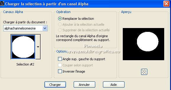 Sélections>Charger/Enregistrer une sélection>Charger à partir d'un canal alpha.