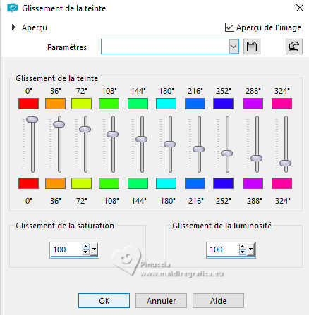 11. Réglage>Teinte et Saturation>Glissement de la teinte