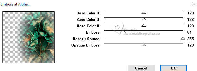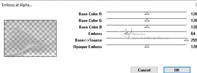Effets>Modules Externes>Mura's Seamless - Emboss at Alpha, par défaut.