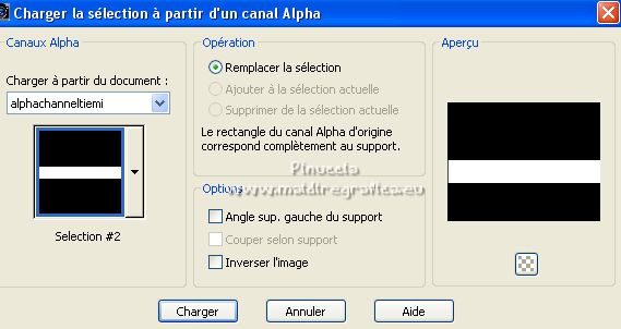 17. Sélections>Charger/Enregistrer une sélection>Charger à partir d'un canal alpha.