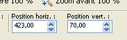 et placer Position horiz.: 423,00 et Position vert.: 70,00.