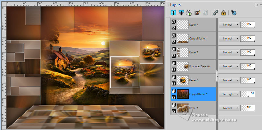 Change the Blend Mode of this layer Hard Light and reduce the opacity to 51%.
