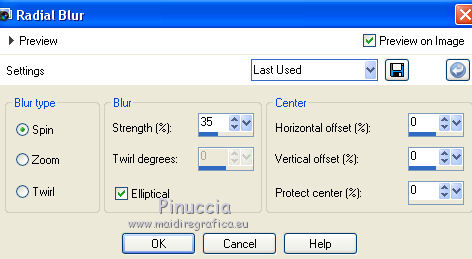 Adjust>Blur>Radial Blur, same settings.