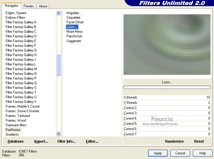 4. Effets>Modules Externes>Filters Unlimited 2.0 - Funhouse - Loom, par défaut.