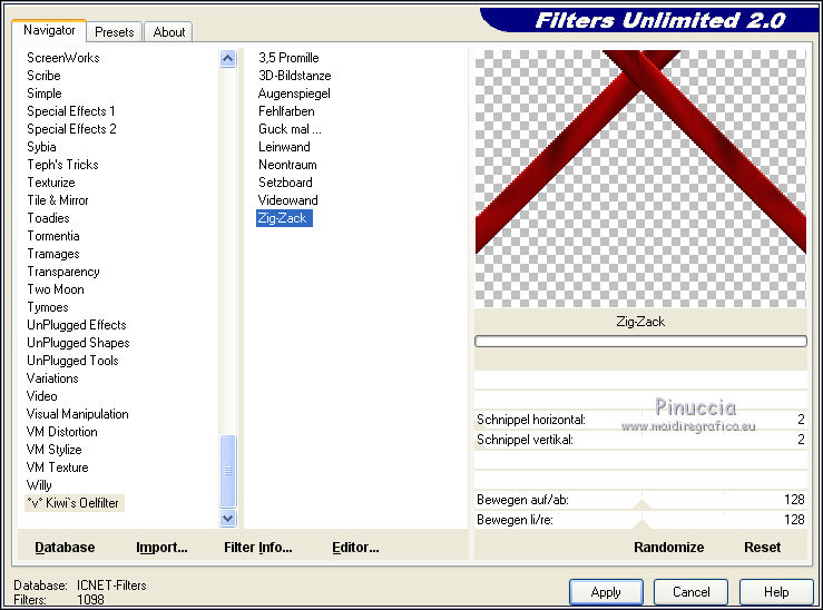 Filtres VM Distortion et Kiwi's Oelfilter peuvent être utilisés seuls ou importés dans Filters Unlimited.