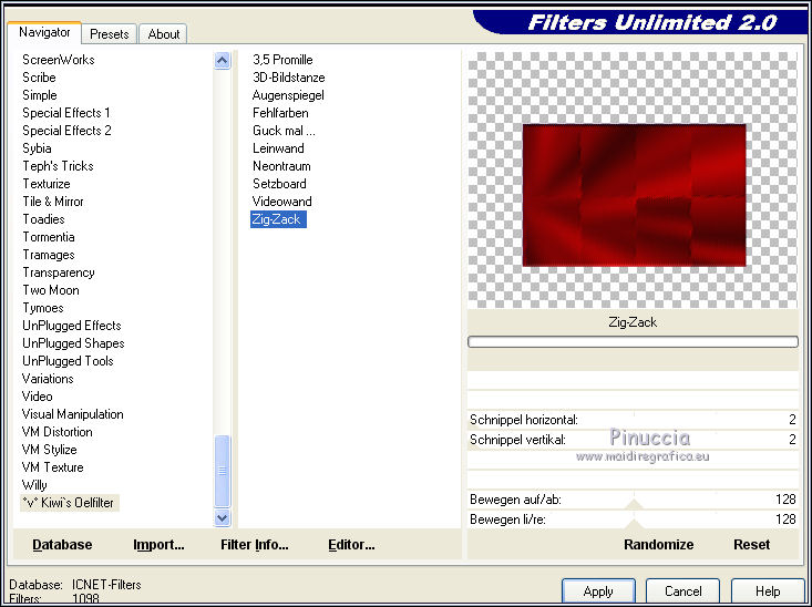 Effets>Modules Externes>Kiwi's Oelfilter - Zig-Zack, par défault.
