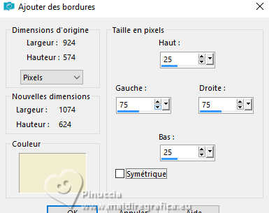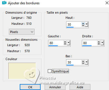 Image>Ajouter des bordures, symétrique décoché, couleur #f2edcf.