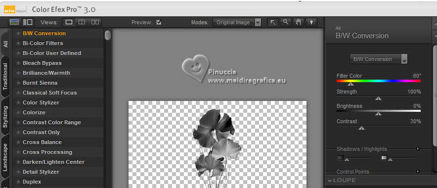 a. Effets>Modules Externes>Nick Software - Color Efex - BW Convention, par défaut.