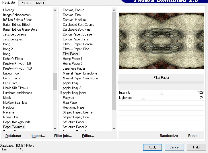 9. Effets>Modules Externes>Filters Unlimited 2.0 - Paper Texture - Filter Paper