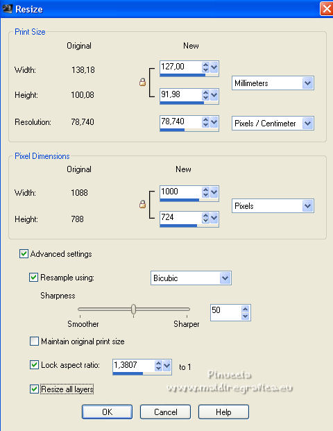 Image>Resize, 1000 pixels width, resize all layers checked.