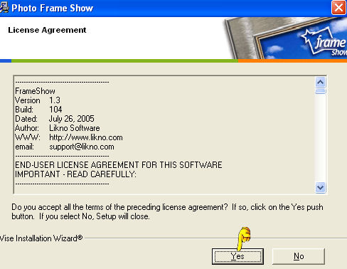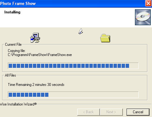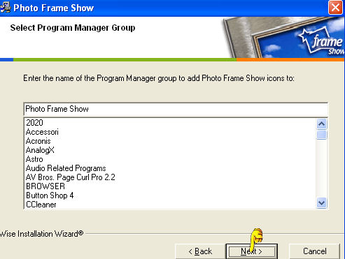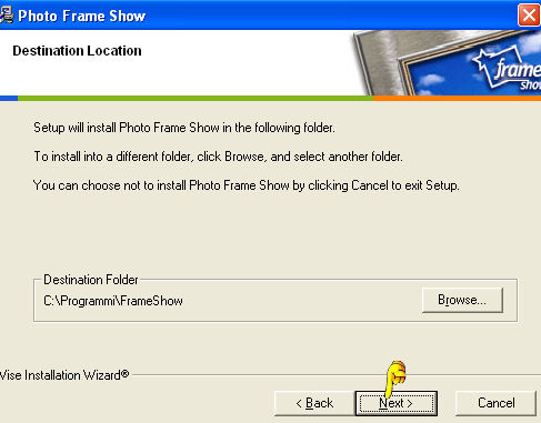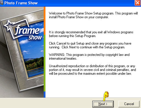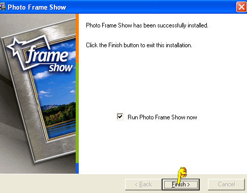 Se non vuoi aprire subito Photo Frame Show, togli la selezione da "Run Photo Frame Show now".