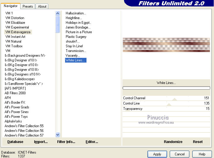 10. Effetti>Plugins>Filters Unlimited 2.0 - VM Extravaganza - White Lines.