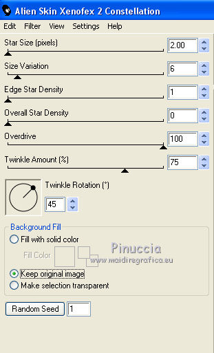 Effetti>Plugins>Alien Skin Xenofex 2.0 - Constellation, clicca su Random Seed e ok.
