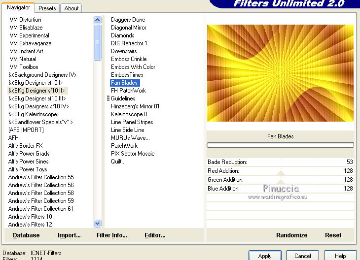 6. Effetti>Plugins>Filters Unlimited 2.0 - &<Bkg Designer sf10II> - Fan blades.