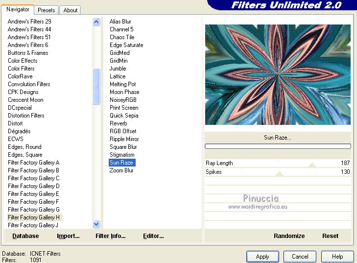 Effetti>Plugins>Filters Unlimited 2.0 - Filter Factory Gallery H - Sun Raze.